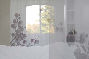 Bloeiende bloesem op voile rondom het bed; met deze nieuwe interpretatie van het hemelbed is het voor altijd lente in de slaapkamer. Het meubel combineert een bed, douche, toilet en wastafel in één volume. Het bed- en badmeubel staat vrij in de ruimte, liggend in bed is er via het dakraam uitzicht op de sterrenhemel. Tegenover het bed is een vrijstaand bad geplaatst.