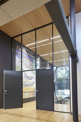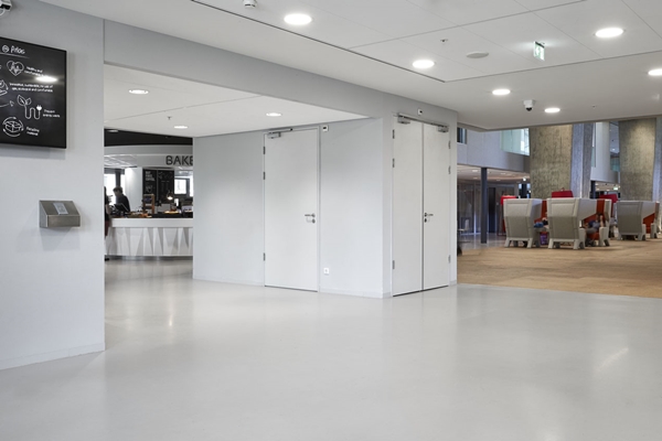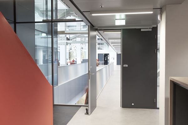 GEZE Benelux heeft door het gehele Atlas gebouw 64 drangers geplaatst. Van de doorgangen naar de collegezalen, kantoren, deuren naar de afgesloten ruimten bij de kantine of de entree naar lokalen, de