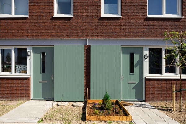 De grondgebonden woningen aan de zuid- en noordrand van het plein zijn compacte maar volwaardige eengezinswoningen. Langs de IJsselstraat hebben we een woning met een bredere beuk ontworpen en zijn we in staat om op de begane grond de hoofdslaapkamer, een rolstoelgeschikte badkamer en een opstelplaats voor de wasmachine te realiseren.