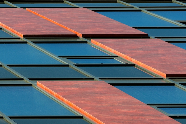 Bratislava is booming. Numerous new construction projects are changing the city’s image. Re-development work to create a new residential and working district on the premises where the traditional Stein brewery used to operate is just one of these many projects. The construction site for one particular office building posed an especially challenging task as its location was at the corner of the plot and at the intersection of two main access roads into the city centre. This entailed implementing special insulation solutions to combat noise and lighting strategies to tackle the site’s angular shape. The location, not only on the threshold to the new district but also close to a cultural heritage site and the old brewery tower, meant due respect for the history of the place was crucial. A building in this position must fit in and stand out at the same time. It must embody both old and new while complying with a large number of technical requirements. So what was the appropriate form and size for this place? The architect Ivan Kubík has chosen an open structure in reinforced concrete with a glass façade and, at eight-storeys high, adapted to fit in with the neighbouring buildings. He has reduced the building to five-storeys where it comes in connection with the brewery tower and set the upper two floors back from the line of the façade. This gives the old tower more breathing space and enhances the external effect. On the other side, the office building has been scaled down to blend with the new residential development and to allow a more sunlight into the courtyards. The so-called Stein 2 Office has 11,000 m² of office space and another 900 m² of retail space. The architect has accentuated the exterior by opting for a dark glass façade and the distinction between it and the white rendering on the old tower is striking. The ALUCOBOND® composite panels in Vintage Corracero B give the building a local reference because their colour and the surface structure are reminiscent of Bratislava’s different architectural eras and one ever present and dominant colour: the orange red of many old town roofs and the rusty red steel of the old weathered Soviet buildings.
