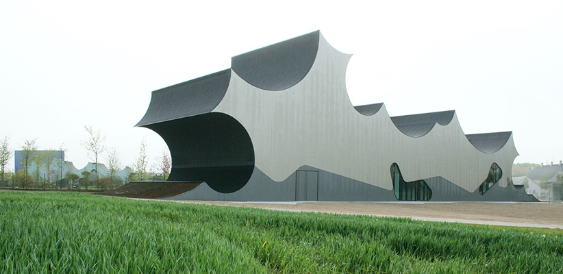 “Food Factory” and “Curiosity Center” are located at the hub of “Danfoss Universe”, a 5.5 hectare science amusement park near the Danfoss headquarters in Nordborg, Denmark. These buildings, a restaurant and an exhibition-conference-centre, are linked by the outdoor landscape, and they reflect