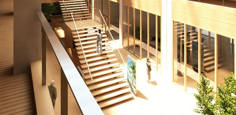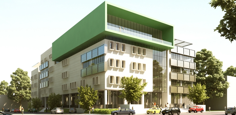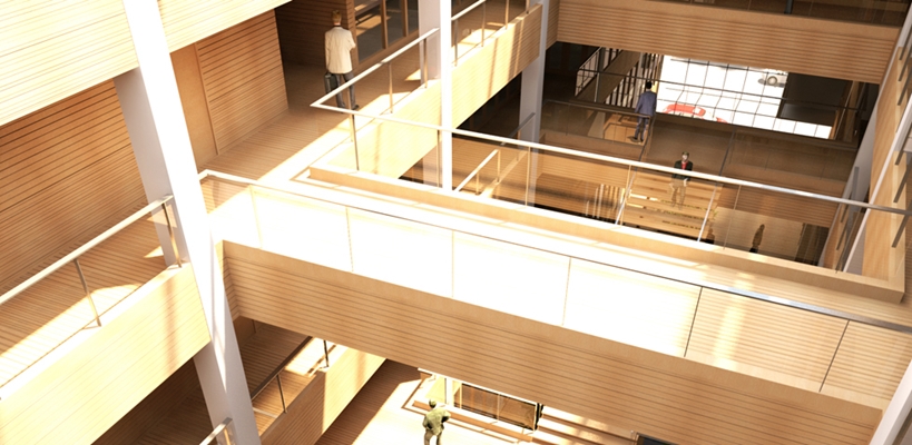 the main concept of the building is to creat a transparant building , the building itself contain floating heavy blocks on the glass cladding in the ground floor. inside the building we creat an which atrium shows the transparancy inside the building and showing all of the departments. the building is well connected through three vertical connections and a gallery in the middle of the building.