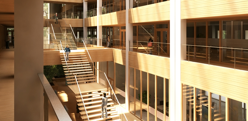 on the top floor we have the cantine, nursery and kindergarten to prevent noisy activities with other important activities. but also in shape they are different.