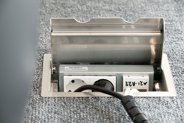 in de vloer en worden de kabels netjes weggewerkt met de