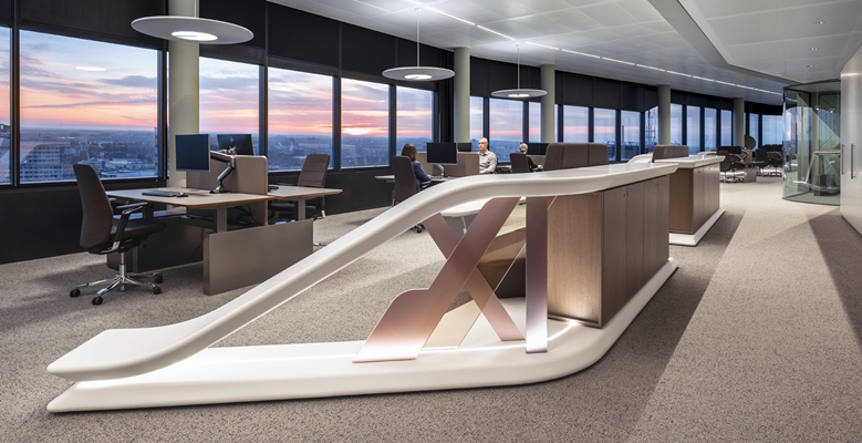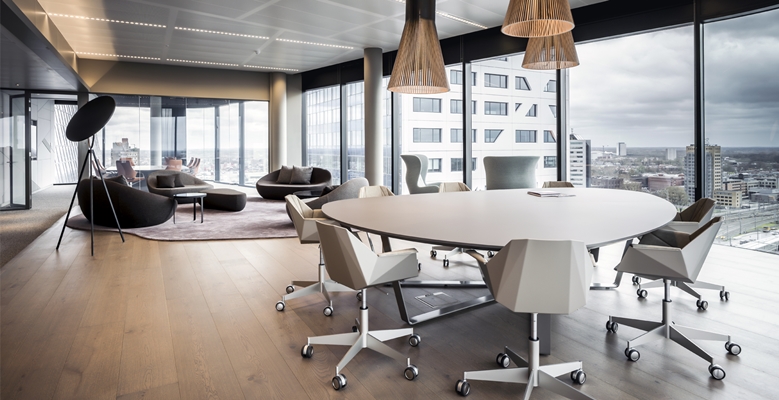 Een ´lounge loft office´op de 18e verdieping in het nieuwe WTC met een fenomenaal uitzicht over de stad Utrecht. Vanaf het begin hadden we een visie van een aaneengeschakelde loungevloer, waar werken, vergaderen en ontspannen op een vrije en informele manier over- en samenvloeien. Een plek waar hoogopgeleiden en nieuw talent zich kunnen ontplooien en ontwikkelen.