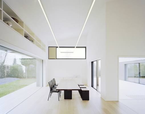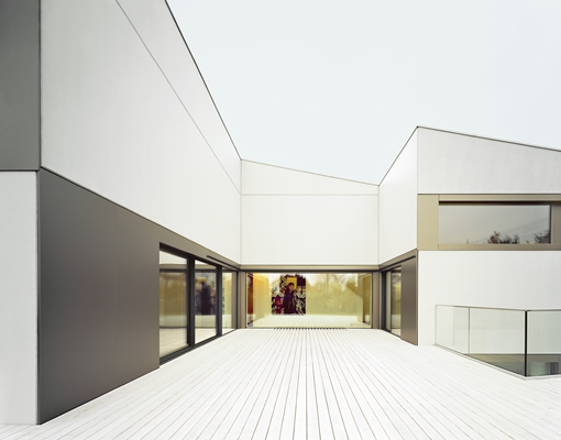 While architects elsewhere were evoking the future with their daring, large-scale volumes, from 2000 onwards, architecture in Germany tended to become visibly more austere. In so doing, architectural development was running parallel to emotional debates about interpreting the past, and this meant social trends had an equivalent in architecture. The result: historical reconstructions in some places, and in others, reminiscences of classic Modernism, itself already part of history. Both options adhere to the same principle: to generate something intrinsic and authentic and create a sense of identity for a society which is in the process of change. The concepts of Modernism can be found in the Tubingen Cityvilla built by Steimle Architekten. The monolithic volume has been reduced to basic essentials: the positioning of the windowsto provide good natural lighting in the interior and to offer perfect views of the landscape. The façade, featuring panorama windows along with concrete and ALUCOBOND® elements, keeps material mix and projections to a minimum. Even the window frames, set flush with the façade, are only defined as a line. The whole building dematerialises to extend the space and to link