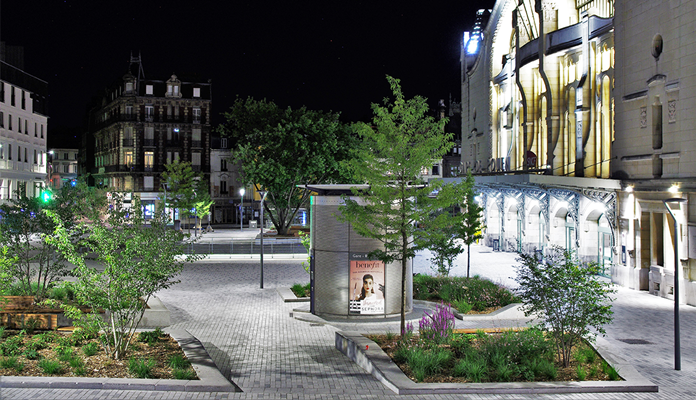 Het station Rouen Rive-Droite is een belangrijk regionaal vervoersknooppunt met meer dan 6 miljoen passagiers per jaar, gelegen in het dichtbebouwde historische centrum van Rouen in Normandië. Het stationsgebied functioneert als de belangrijkste toegangspoort tot de regio, maar de rommelige openbare ruimte vormde een barrière voor fietsers en voetgangers. OKRA heeft het gefragmenteerde en door auto’s gedomineerde stationsgebied getransformeerd tot een aantrekkelijke en voetgangersvriendelijke entree voor de stad. Het project is in oktober 2019 opgeleverd.