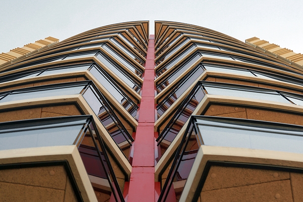 Door de gebogen zijgevels zijn in het midden te onderbreken en t.o.v. elkaar te verschuiven, ontstaat er ruimte voor balkons waardoor niet alleen de kopwoningen, maar ook de tussenwoningen een overhoeks uitzicht hebben.
