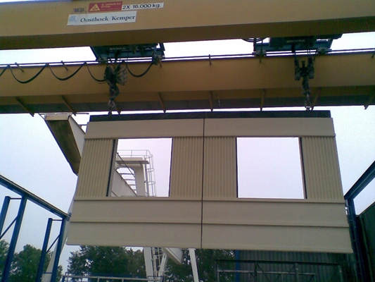 Zowel de draagconstructie als de gevels zijn geheel geprefabriceerd van betonnen elementen. Door deze elementen zowel horizontaal als verticaal van een profilering te voorzien wordt het ronde karakter van de gevels versterkt en de naden tussen de elementen gemaskeerd. De dragende gevels maken een flexibel in te delen plattegrond mogelijk en vergroten daarmee de levensduur van de gebouwen.