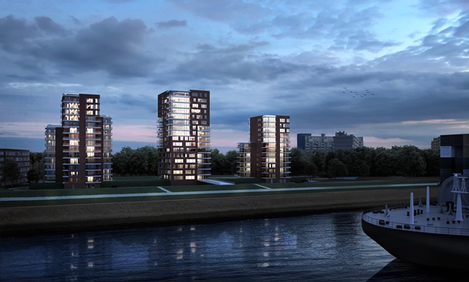 De drie torens passen qua maat en schaal in de weidse omgeving op de overgang van land naar water. Om de torens een eigen identiteit mee te geven zijn stevige gebaren nodig, daarom is met behoud van plattegrond en draagconstructie een speelse verspringing in de gevel gebruikt die de torens een zekere dynamiek meegeven.