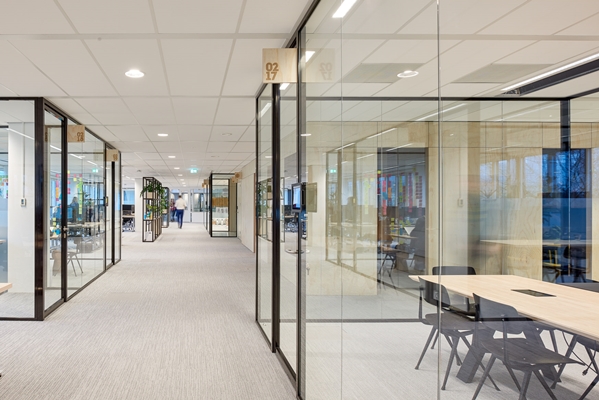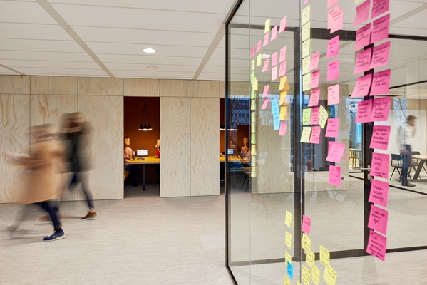 De kantoorruimte is ontworpen aan de hand van een serie flexibele werkplekken door het kantoor, in de vorm van overlegruimtes en diverse laagdrempelige ‘break-out’ plekken. Mensen kunnen er overleggen, zich terug trekken en sociale interactie kan er plaats vinden. Het creëren van deze gedeelde ruimtes door het kantoor heen zorgt voor een continue mix van de diverse afdelingen wat bijdraagt aan een positieve en integrale sfeer rondom elke afdeling.