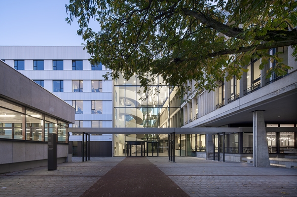 Imposante, gerenoveerde gevel aan de entree als verbinding tussen oud en nieuw