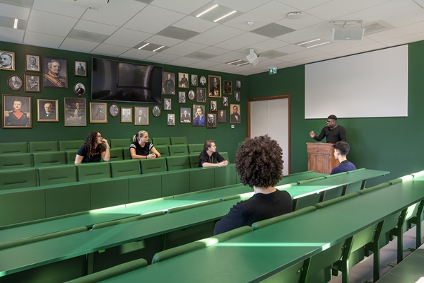 De combinatie van oud en nieuw levert een bijzonder schoolcomplex op met ruimten in vele soorten en maten, passend bij de diversiteit aan onderwijs van Lumion Amsterdam.