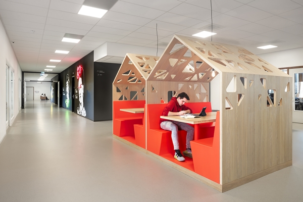 Het interieurontwerp is speciaal ontwikkeld om gepersonaliseerd onderwijs te faciliteren. Lumion is de eerste partnerschool van