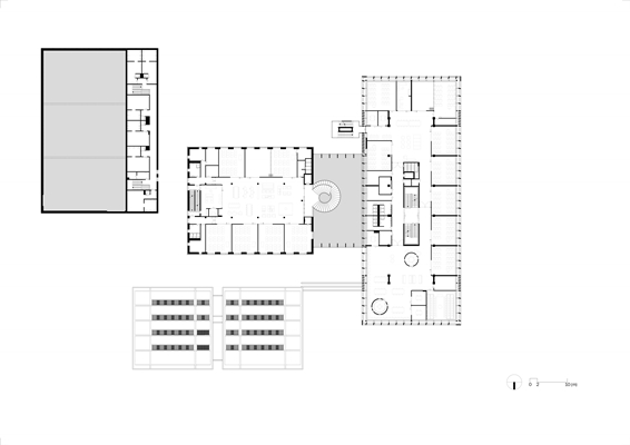 In een gehandhaafde praktijkhal is het bestuur van de school ondergebracht, in de andere een bijzondere gym-voorziening. Ook hier zijn de gevels en de daklichten opgewaardeerd en voorzien van HR++ glas.