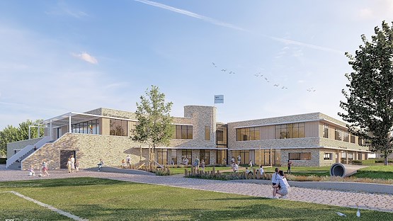 Het interieur is op alle verdiepingen voorzien van een frisse moderne zakelijke uitstraling met mooie materialen en accenten in de huisstijlkleur.