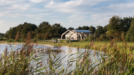 Op de bovenste verdieping is een nieuw dakterras gerealiseerd binnen de oorspronkelijke vorm van de kap. Naast het terras bevindt zich de gemeenschappelijke lunchruimte met bar.