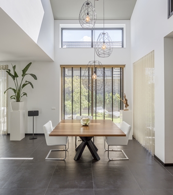 Naast een strak interieur horen bij een moderne villa ook moderne details. Zo is de dakgoot van Villa Zuidhoek verborgen in de spouw middels het ingewerkte goot systeem, en liggen de zonnepanelen geïntegreerd in één vlak tussen de dakpannen. Bovendien is het huis ook levensloopbestendig ingericht en voorzien van een lift naar de verdieping.