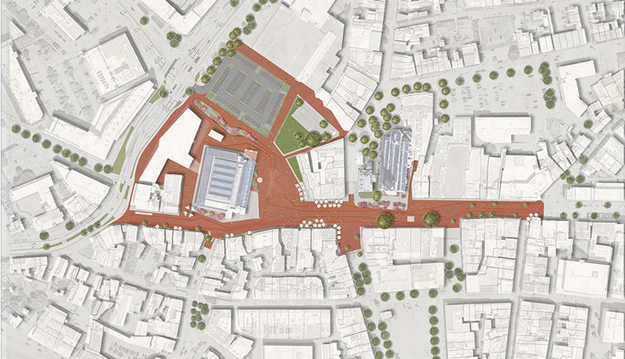 De Enschedesestraat in Hengelo is geheel heringericht naar een ontwerp van OKRA landschapsarchitecten. Het bureau heeft van de straat een sfeervol wandelgebied gemaakt met een warmrode ondergrond, cortenstalen goten en kunst in de openbare ruimte. De rode kleur van de bestrating en de weelderige beplanting moeten een sfeer van gezelligheid oproepen in een binnenstad waar mensen graag verblijven of willen winkelen.