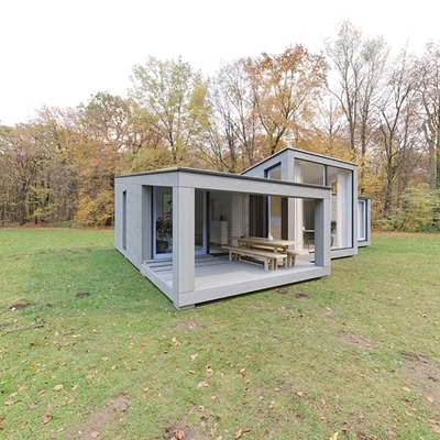De woning is modulair opgebouwd, de losse units kunnen naar wens worden ingedeeld en geschakeld.