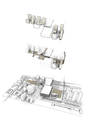 Kenmerkend voor het gebied zijn de thema's: verbinden en verblijven. Het Forum organiseert en verbindt de reizigersstromen van het station naar de omliggende modaliteiten en bestemmingen, waaronder de aangrenzende fietsenstallingen en tramhalte. Ook de aansluiting met het bestaande Beatrixgebouw en Rabobank complex, behoren tot deze bestemmingen.