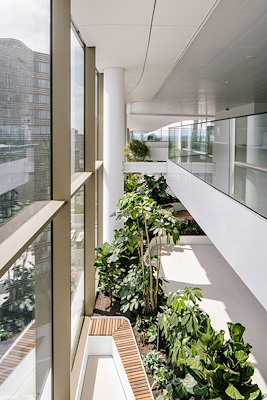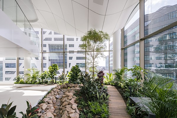 Central Park ontleent de naam aan het subtropische landschap dat het kantoorgebouw halverwege op 45 meter hoogte markeert. Het stadspark huisvest maar liefst 50 bomen en struiken, 1.500 planten en zelfs een kabbelend beekje en heeft één doel voor ogen: kantoorgebruikers voorzien van frisse lucht en een andere omgeving, wat zorgt voor stressvermindering tijdens een drukke werkdag.