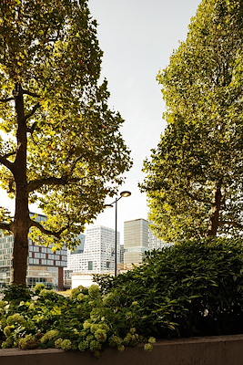 Central Park gezien vanaf het verhoogde plein rond Utrecht CS