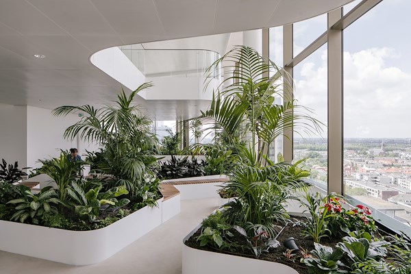 Het subtropische landschap op 45 meter hoogte markeert de kantoortoren Central Park