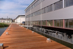 Bij het ontwerp voor de verbouwing staat het oorspronkelijke industriële en utilitaire karakter centraal. De langsgevels worden geïsoleerd en afgewerkt met aluminium golfplaten en voorzien van aluminium kozijnen. De beide koppen worden niet afgewerkt. Hier blijft de ruwe scheepshuid met een patchwork van alle reparaties zichtbaar.