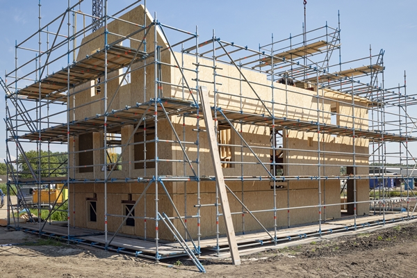 Het bouwsysteem van Kingspan TEK bestaat uit constructief geïsoleerde panelen, oftewel SIPS (Structural Insulated Panels System), die een dragende en isolerende functie combineren. De panelen vormen samen het casco van de woning. “We hebben in onze werkplaats van de panelen complete wanden gemaakt”, legt Slagboom uit. “Het casco is vervolgens per woning in één week tijd met vier man op de locatie opgebouwd.” Dat maakt de bouw veel minder weersafhankelijk. Slagboom: “Het is een heel droog systeem, dat snel wind- en waterdicht is.”