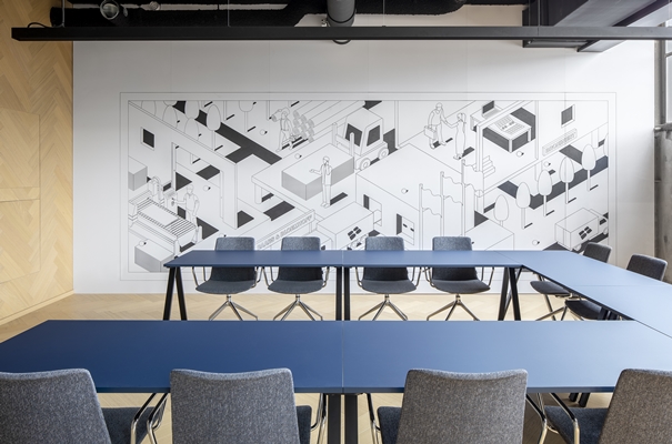 Last but not least, de meeting ruimte beneden is voorzien van een echte eyecatcher: een zwart-wit illustratie van