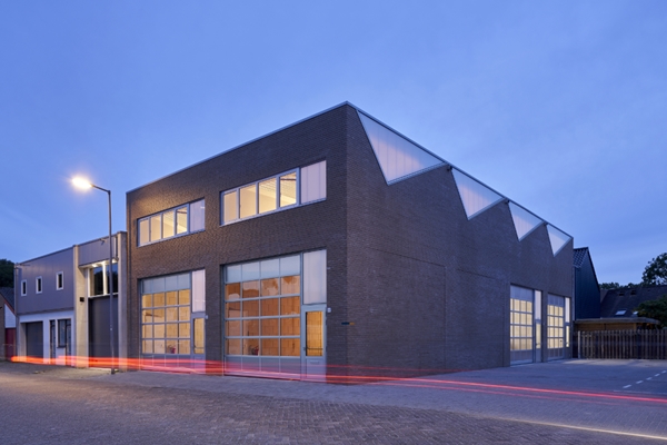 In plaats van een typisch bedrijfspand met een gesloten en ietwat tijdelijke uitstaling dankzij het materiaalgebruik, koos het bureau voor het duurzamere materiaal baksteen in combinatie met een opener karakter voor het gebouw. De doorschijnende ‘sheddakdriehoeken’ zorgen tevens voor een gereduceerde lichtinval en voorzien het pand als het donker is van een subtiele gloed.