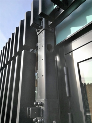Prachtige toepassing van FalcOnWood Lodge Pole Pine lamellen in de kleur zwart Ral 9005.