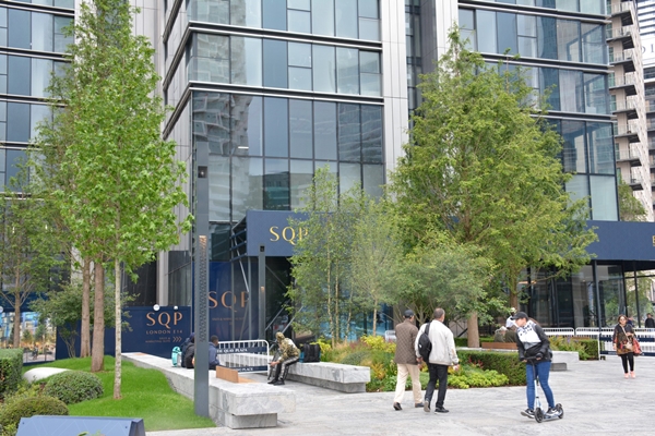 In het hart van Londen, bij Canary Wharf verrijst een van de grootste wooncomplexen. South Quay Plaza, van architect Foster + Partners, bestaat uit 3 woontorens waarvan de hoogste 68 etages beslaat. HTA Landscape is verantwoordelijk voor de inrichting van de buitenruimte. Deze beslaat 1,7 hectare en is openbaar toegankelijk. Het ontwerpteam moest een perceptie van schaal op grondniveau weten te behouden en er moesten verschillende ruimtes voor actief en passief gebruik worden gecreëerd. Voor het behoud van schaal werden grote bomen aangeplant. Deze creëren een aangename, geborgen sfeer. Van den Berk Boomkwekerijen leverde grote Metasequoia’s met een stamomtrek van 50-60, 70-80 en 100-120 cm, krenteboompjes, papierberken en Italiaanse populieren. Deze zijn in het najaar van 2018 aangeplant en geven direct een volwassen beeld.