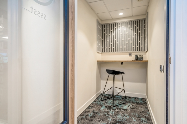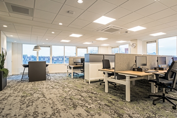 De kantoortuin vindt plaats in een besloten deel van het gebouw. Het is een productieve en stimulerende omgeving die gericht is op flexibiliteit en communicatie van medewerkers. De werkvloer is opgedeeld in diverse zones om gebrek aan privacy en afleiding te verlagen. Medewerkers kunnen plaatsnemen aan één van de flexwerkplekken, in een akoestische belnis of in een afgesloten spreekkamer.