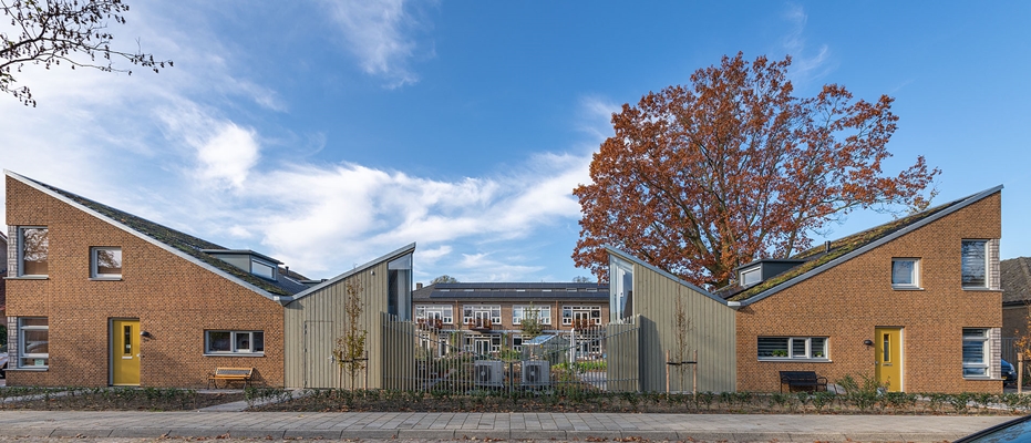 In het voormalige schoolgebouw en aangrenzende gymzaal zijn in totaal 11 zelfstandige appartementen en één gemeenschappelijk appartement gerealiseerd. Elk appartement is uniek in zijn indeling en daarom optimaal afgestemd op de wensen en en woonbehoeften van de bewoner. De gevels van het schoolgebouw zijn zo min mogelijk aangetast, waardoor het gebouw en zijn oorspronkelijke karakter gewaarborgd blijft. Nieuwe corten stalen balkons aan de voorzijde voor het schoolgebouw geven de woningen op de verdieping evenveel buitenruimten als die op de BG. De balkons zijn middels een vouw en snijtechniek geproduceerd waarvoor NEXIT al eens de nationale staalprijs gekregen heeft (in 2016). De bestaande zoldervloer is deels verlaagd waardoor deze bruikbaar is gemaakt en op andere plaatsen is de zoldervloer verwijderd om zo optimaal zicht te bieden op de bestaande houten spanten en royale ruimtelijke appartementen zijn ontstaan.Voor het schoolgebouw bevind zich een gezamenlijke besloten binnentuin waar de monumentale bomen gehandhaafd bleven op een plek die voorheen met allerlei opstallen dichtgeslibt was. Twee nieuwe poortgebouwen aan de straatzijde bieden de passant een beknopt zicht op tuin én schoolgebouw waardoor deze voor de stad zichtbaar blijft. Aan de achterzijde van het gebouw ligt, in de middagzon, een gezamenlijk pleintje met, jeu-de-boules baan, picknickbanken en een buitenkeuken. Het pleintje wordt geflankeerd door een oorspronkelijke gymzaal en drie geschakelde nieuwbouwwoningen. Een doorlopende band van afwisselend gesloten vlakken en glasvlakken verbind de balustrade van het schoolgebouw met de ramenband op de eerste verdieping van de nieuwbouwwoningen. Alle woningen hebben een eigen privé terras of balkon in een verdere semi openbare ruimte. Bergingen en fietsenstallingen zijn ondergebracht onder een begroeide ‘bercaux’ die tevens dienst doet als geluidsmuur voor de aangrenzende Albert Heijn.