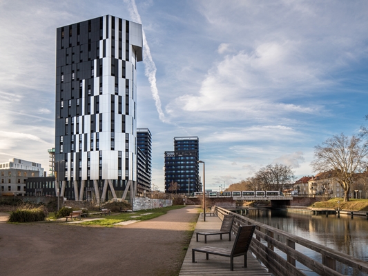 A tower with a hight of 57 meters, 63 apartments and 800 m² space for offices.