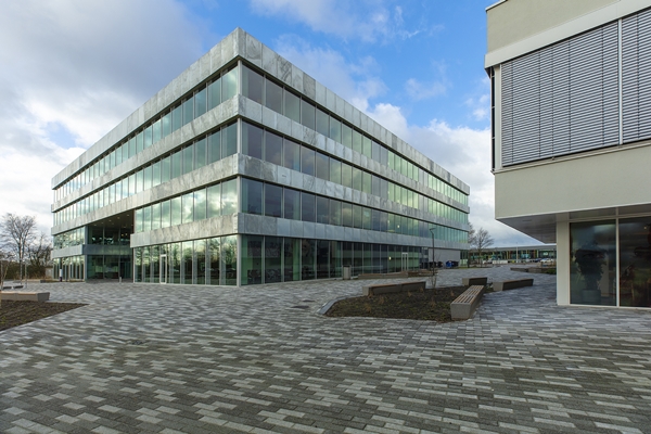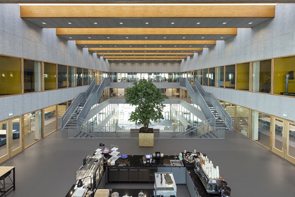 De architect heeft gekozen voor robuuste materialen die vooraf getoetst zijn op duurzaamheid. Zo is zoveel mogelijk meubilair hergebruikt, zijn er zonnepanelen op het dak en is het grote atrium voorzien van een glazen kap waardoor het natuurlijk daglicht vrij spel heeft en tot diep in het gebouw kan doordringen. Het kleurgebruik is ingetogen. Op de vloer ligt 8.000 m2