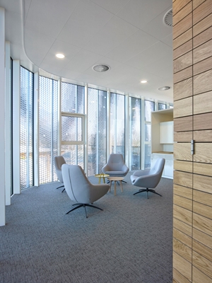“Tijdens de ontwikkelfase heeft Metadecor een mock-up gemaakt van de gevel, waardoor we het effect goed konden beoordelen. Dit was ook voor de toekomstige gebruikers én de opdrachtgever heel prettig. Tijdens de productie bleek het voorzien van een radius in 5 meter hoge panelen wel een uitdaging. Maar door creatief denkwerk is Metadecor erin geslaagd om het beoogde beeld neer te zetten”, aldus Gertrud Topper.
