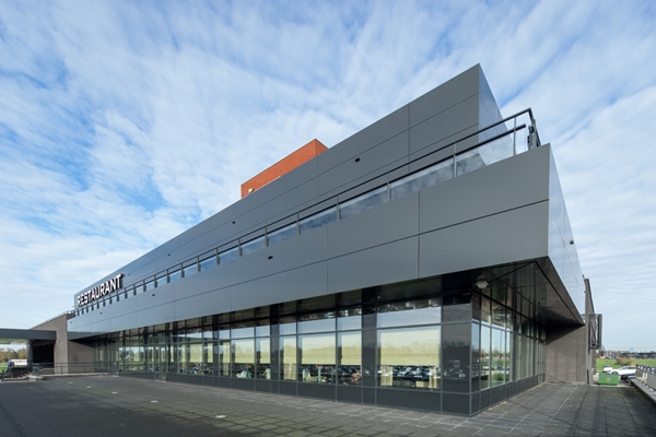 Castles used to line the travellers’ route, visible from afar and promising protection on dangerous journeys. The van der Valk Hotel in Zwolle is one of these castles, however, instead of being centuries old, it is new. Seen from the motorway, the substantial, compact form of the hotel rises above the flat Dutch hinterland. It is secured against intruders, storm floods and high water, an oblong volume is placed on high supports and set on a flat, massive block. ALUCOBOND® elements in three different colours accentuate the basic shapes of both oblong building and underlying block. A modern exterior envelope with clearly legible lines. The interior, however, reveals a feudal, baroque-looking world featuring marble stone floors, dark walls, heavy carpets, opulently upholstered furniture in dark leather and deep buttoned velvet in soft powder tones. A meter-long curtain lamp made of shell limestone is suspended from the ceiling, and the walls are covered in leather, textured wallpaper and baroque landscape scenes. The greatest luxury of all: space, extra-wide stairs, galleries and tables. No corners have been cut. Guests can feel as grand and noble as William of Orange once did in this modern castle. The baroque-style elements in the interior are not just an opulent display; their style is reminiscent of the Golden Age, probably the most important epoch in the history of the Netherlands. After a long struggle for independence and freedom of religion, the first Dutch state was founded in 1648, bringing peace and prosperity to the Netherlands. Maritime trade prospered and wealthy citizens discovered their passion for art and culture.