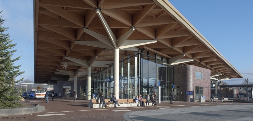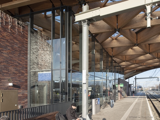 Dit keer hebben we voor het station Assen stalen kozijnen en een hele speciale stalen vliesgevel mogen leveren en monteren. Bijzonder aan deze vliesgevel is dat hij aan de bovenzijde scharnierend is i.v.m. de horizontale en verticale bewegingen van de houten dakconstructie. Omdat alles door ons in BIM nauwkeurig uitgewerkt is, paste het geheel perfect.