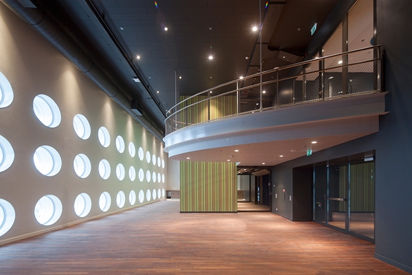Onder het hoofdpodium van de jazz-zaal bevinden zich kleedkamers en inspeelruimtes . Ook is er een visuele en fysieke verbinding met de workshopruimte wat mogelijkheden biedt om afzonderlijk te oefenen of te jammen. Onder het hoofdpodium van de jazz-biotoop zijn kleedkamers en inspeelruimtes. Er is een visuele en fysieke verbinding met de workshopruimte wat mogelijkheden biedt om afzonderlijk te oefenen of te jammen. Dit volume zakt gedeeltelijk onder de jazz-biotoop in de grootste publieke ruimte van het Muziekpaleis, het Muziekplein. Vanaf het Muziekplein biedt een trap toegang tot de jazz-zaal.