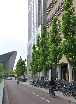 Het Station Rotterdam Centraal, een samenwerking van Benthem Crouwel Architekten, MVSA Meyer en Van Schooten Architecten, verwerkt gemiddeld dagelijks 110.000 reizigers. West 8 Urban Design & Landscape Architecture tekende voor de inrichting van de buitenruimte, met honderden hoogstam en meerstammige platanen.