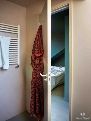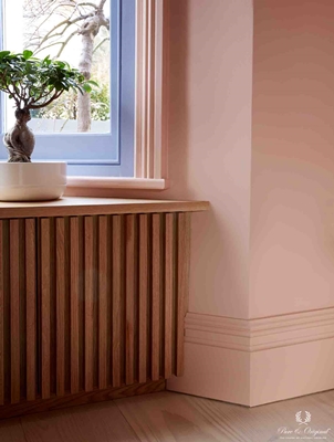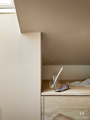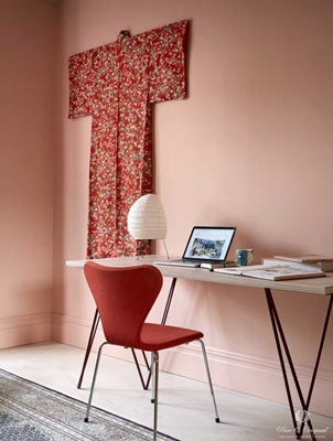 Pink wall: Old Rose Marrakech Walls with Dead Flat Eco Sealer Beige wall: Nutmeg Powder Licetto Door
