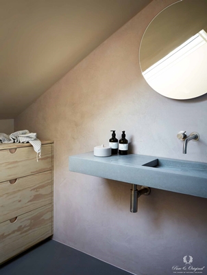 Pink wall: Old Rose Marrakech Walls with Dead Flat Eco Sealer Beige wall: Nutmeg Powder Licetto