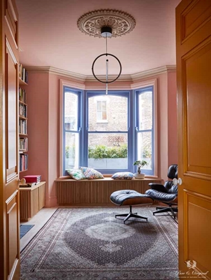Walls: Soft Flamingo Classico Window frames: Soft Greek Traditional Paint Ceiling decoration and cei