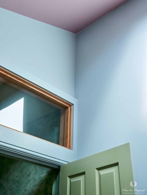 Walls: Polar Blue Classico Ceiling: Mauve Love Classico Green door: Sea Moss Traditional Paint