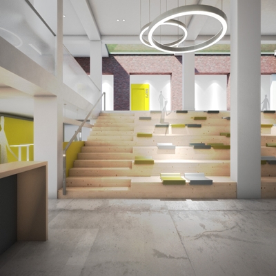 Revitalisering van een bestaande 4-laagse bebouwing uit de 50’er jaren. Een combinatie en samensmelting van souterrain en begane grond en transformatie naar een opleidingscentrum voor de Universiteit Maastricht. De bovenste 2 lagen worden ingevuld met 32 studio’s voor studenten.