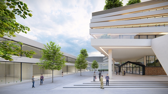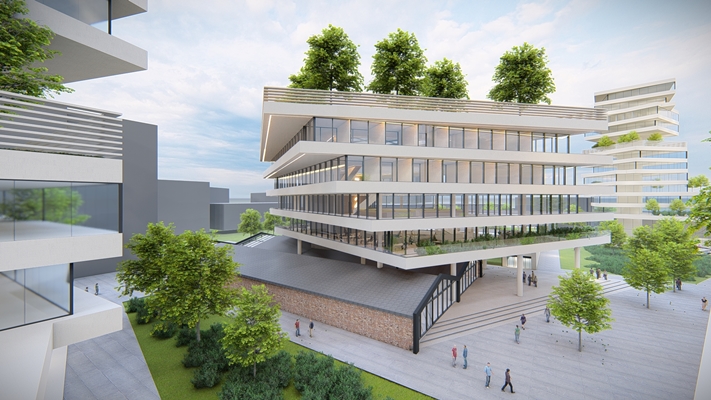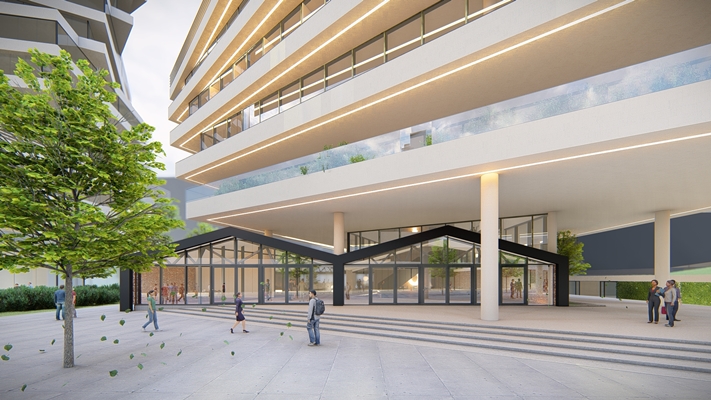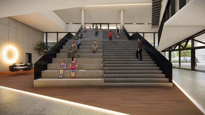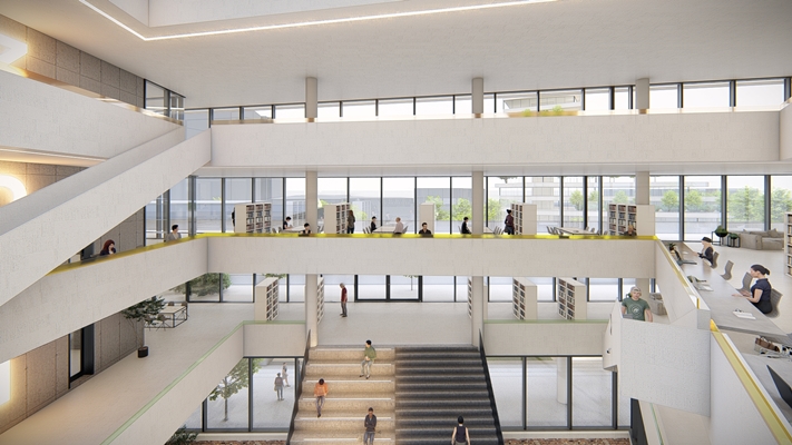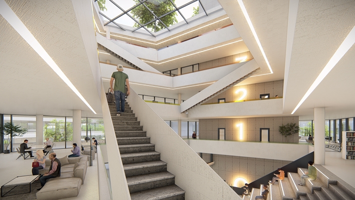 The concept is based on connection. By lifting the new volume it provides multiple routes at ground level and connections to surrounding buildings through the roof gardens. The old building is connected with new building throughout a glass surroundig wich follows the outlines of the void. This creates a transparant connection where people litterly can walk from one building to another.