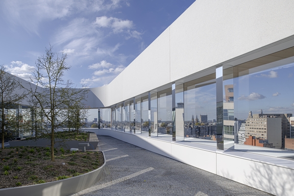 Hogerop voorziet het ontwerp in drie royale en toegankelijke daktuinen die positief bijdragen aan het leef- en werkklimaat van de honderden medewerkers en bezoekers. De kroon van het gebouw wordt afgezoomd met een belvedère van waaruit de geïnteresseerde bezoeker een 360° panorama heeft over de Stad en haar directe majestueuze stationsomgeving.